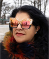 Oversized pink gold chakra art unisex cat eye reflectors sunglasses