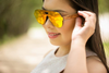 Eclectic is one word to describe this colorful light weight orange aviators, perfect for a professional look, beach or boat cruise look. It's wide lenses provide good coverage and protection from the sun